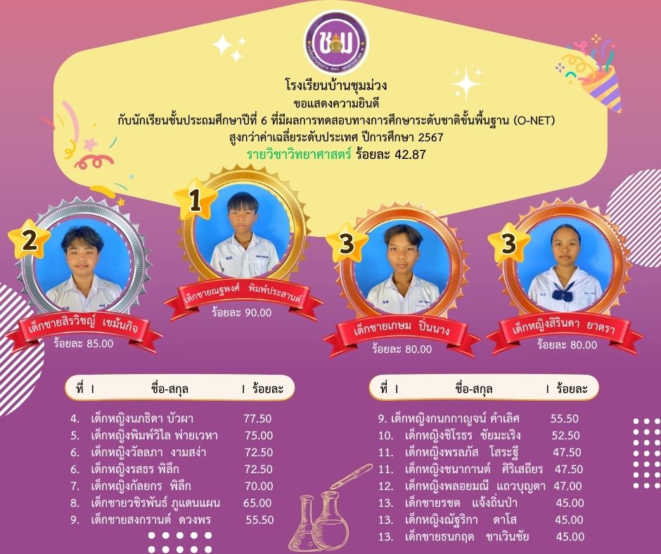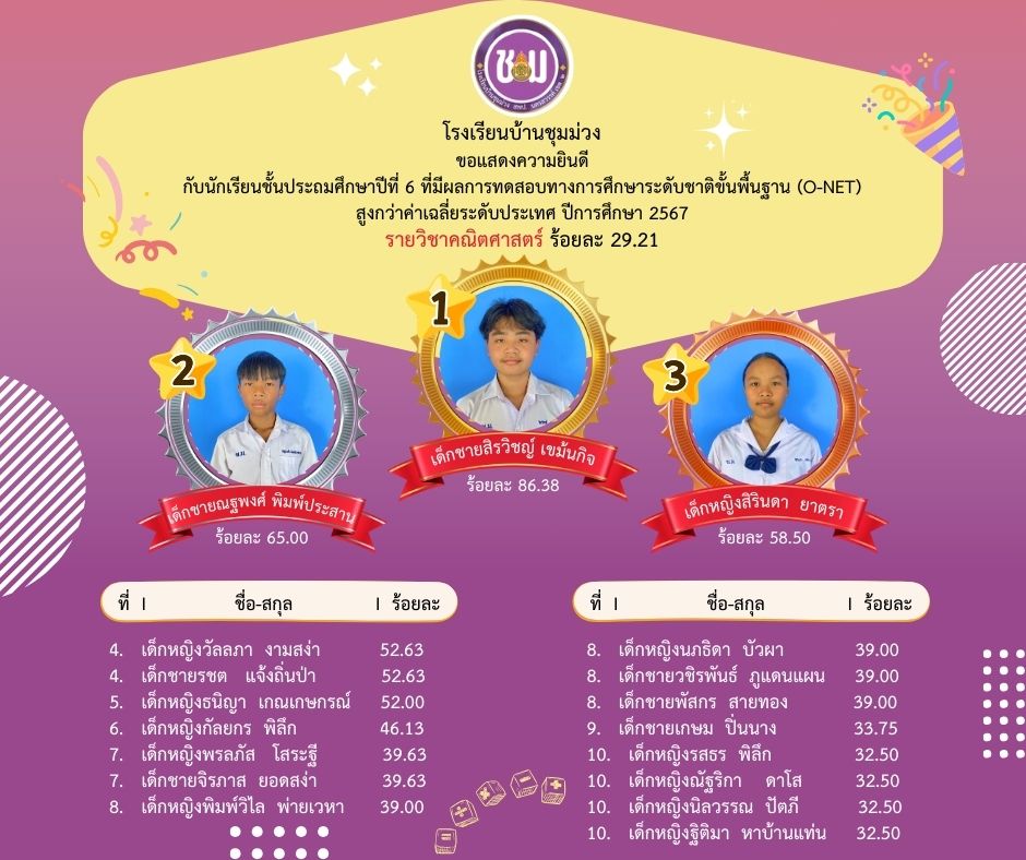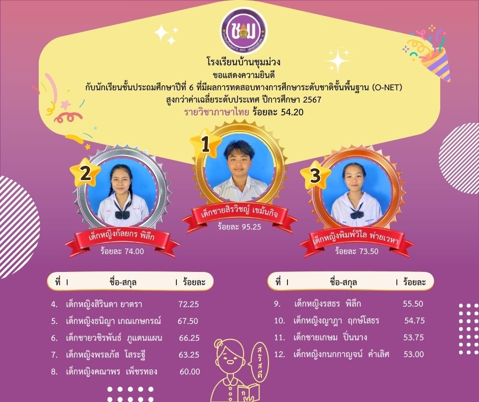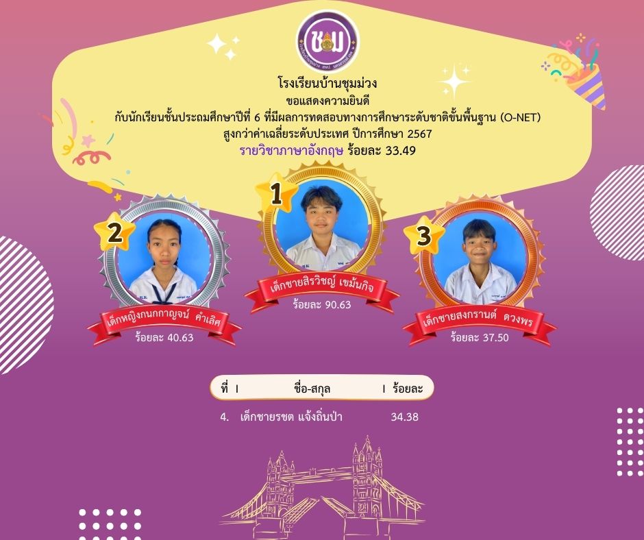 ผลการทดสอบทางการศึกษาระดับชาติขั้นพื้นฐาน (O-NET) ปีการศึกษา 2567